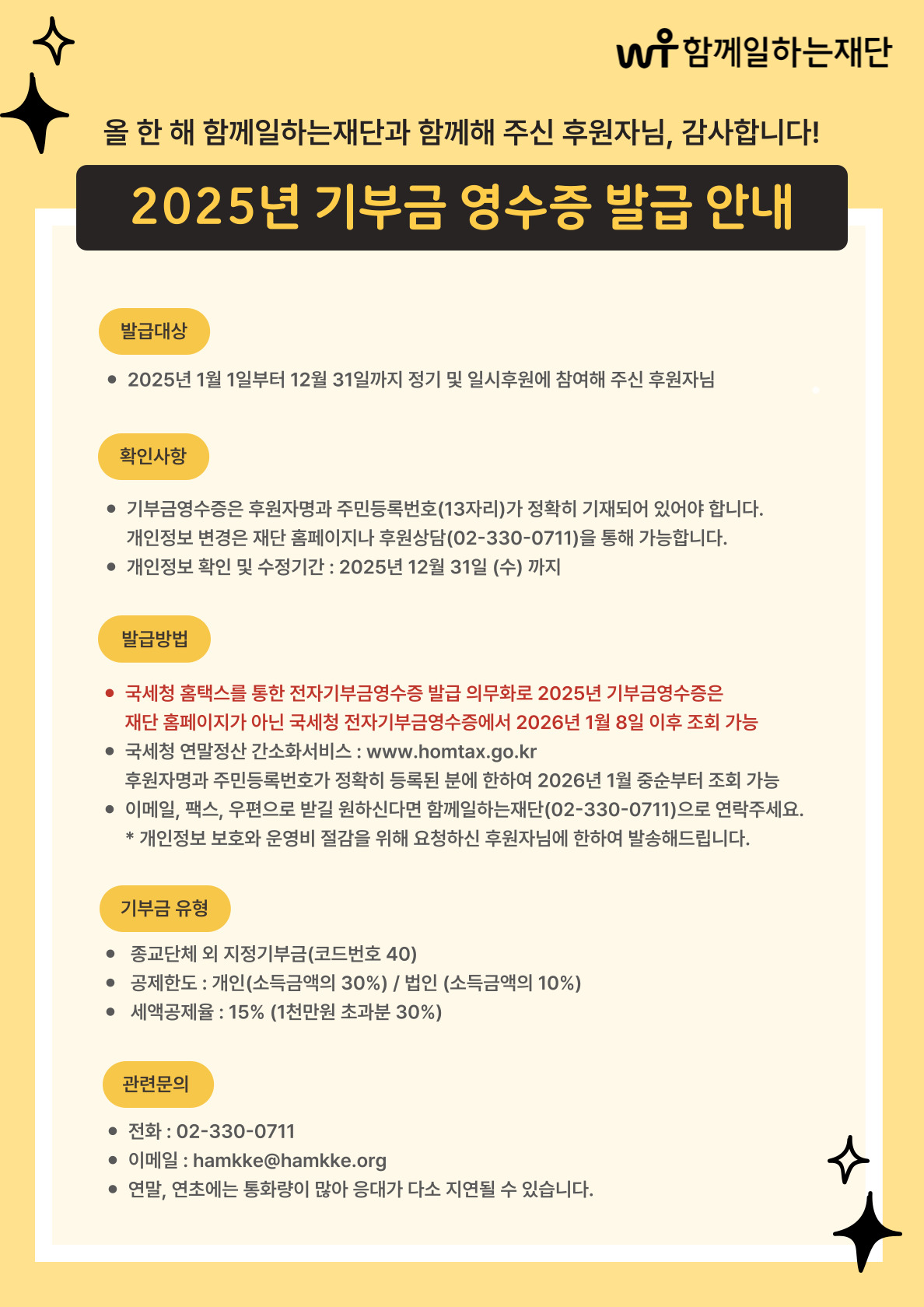 - 2025년 기부금영수증 발급 안내